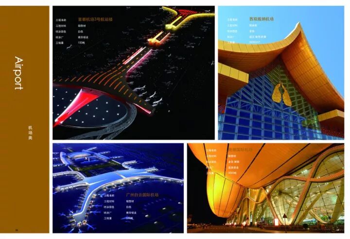 以其优质的喷涂特点,截止目前金高丽化工已与多家知名建筑企业合作,成功为多家知名建筑物提供氟碳涂料,如首都机场、西双版纳机场、衡阳高铁站、青岛大剧院、济南奥林匹克中心、上海世博会中国馆等,其环保、节能、美观效果显著!