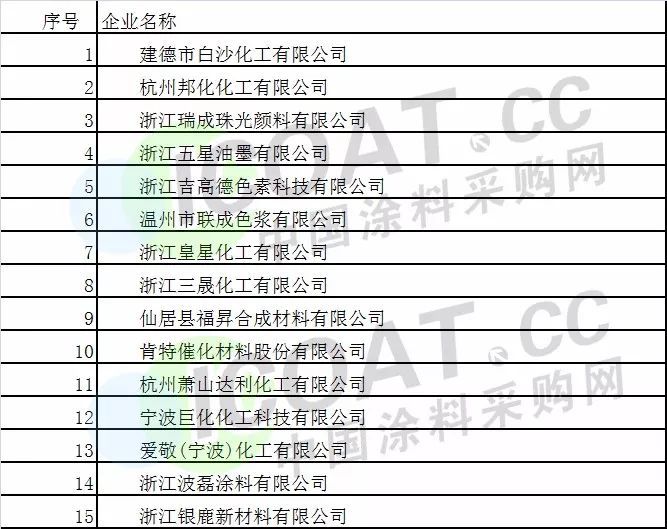 表二:浙江15家化工涂料清洁生产审核重点企业名单