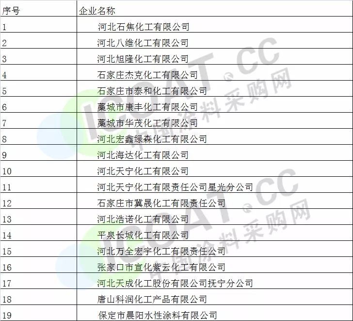 表一:河北省19家化工涂料清洁生产审核重点企业名单