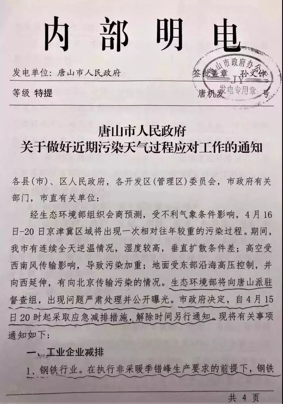 【中国涂料采购网】4月15日,唐山市人民政府发布《关于做好近期污染天气过程应对工作的通知》,要求全市包括涉VOCs排放工序的工业企业15日20时起全面停产,且尚无复产时间表。相关部门本次安排停产主要是应对16日-20日京津冀地区将出现的较严重污染过程。