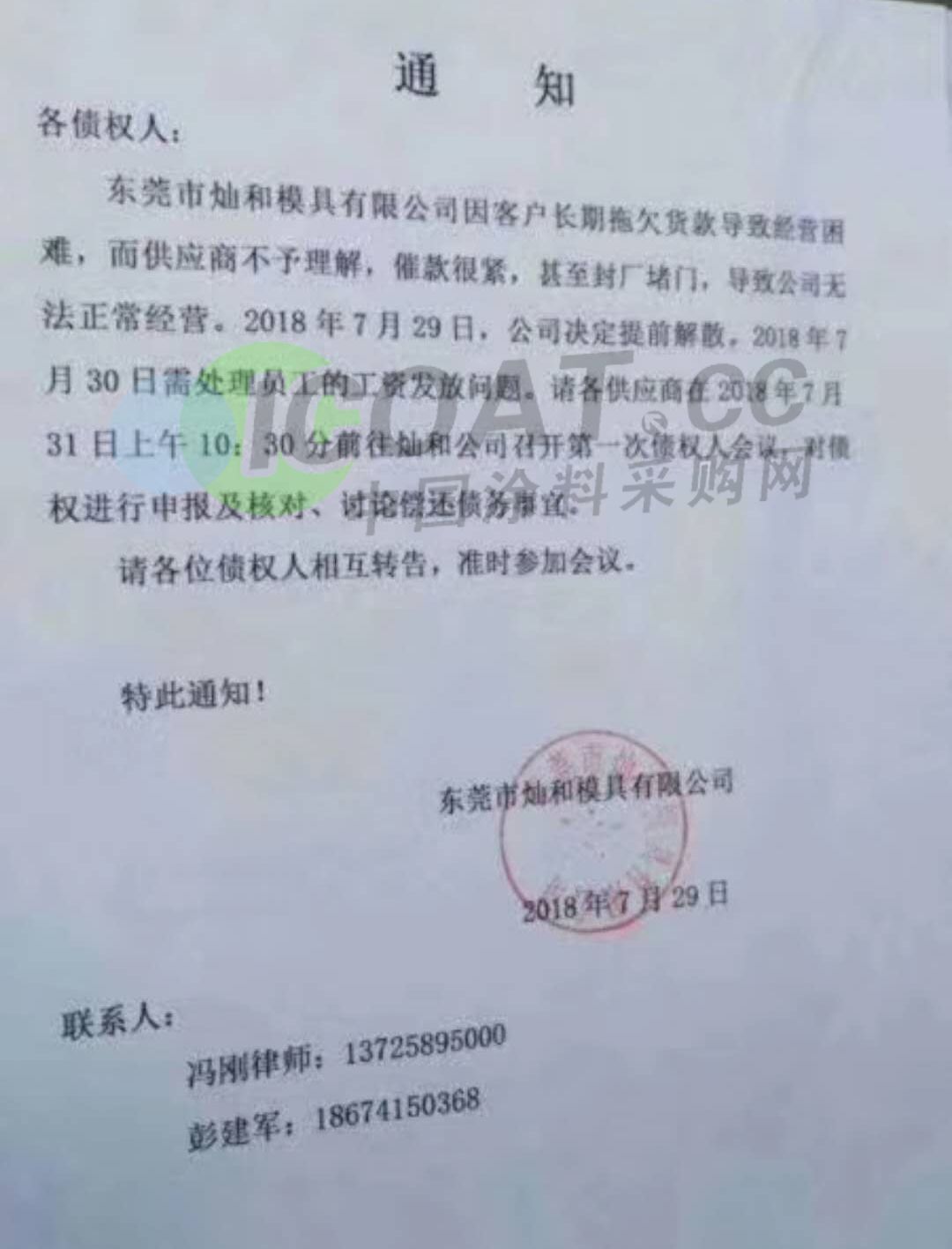据涂料采购网通讯员消息,近期不少涂料企业的下游用户告急,市场需求疲软,资金链断裂,解散公告频频出现。这是继自6月份以来,国内上百家P2P企业大崩盘之后的又一批企业“大逃亡”。各行业企业“倒闭”、“关停”、“破产”、“拖欠工资”、“业绩下滑”、“亏损”等消息历历在目。