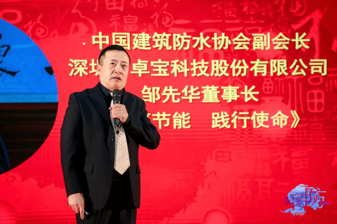 随后,中国建筑防水协会副会长、深圳市卓宝科技股份有限公司邹先华董事长,作为先进集体代表发表了题为《建筑节能,践行使命》的演讲。