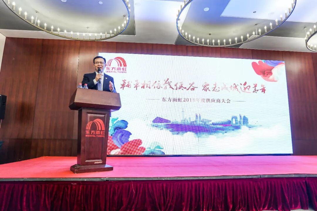 中石油燃料油有限责任公司执行董事兼总经理火金三先生代表优秀供应商发言。火总提到,自2015年底与东方雨虹签署战略合作协议以来,双方合作取得了巨大的成绩。东方雨虹快速的发展也给燃料油公司带来了新的发展机会。在未来,中燃油会继续秉承客户至上、诚信为本、服务为根的营销理念,提升基本服务的效益和拓展增值服务的范围,切实为雨虹提供全面、有价值的服务。最后,火总祝愿雨虹在迈向世界的东方雨虹的征途上取得更大的进步。