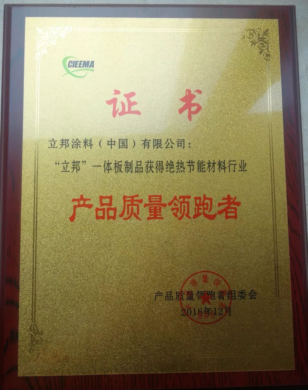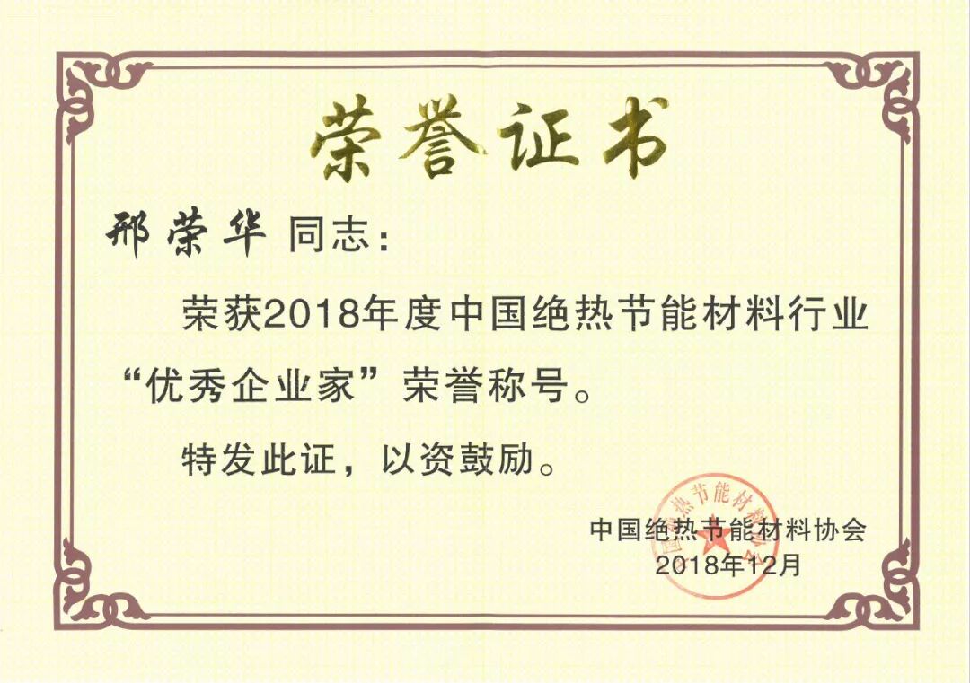 中国绝热节能材料行业“产品质量领跑者”称号