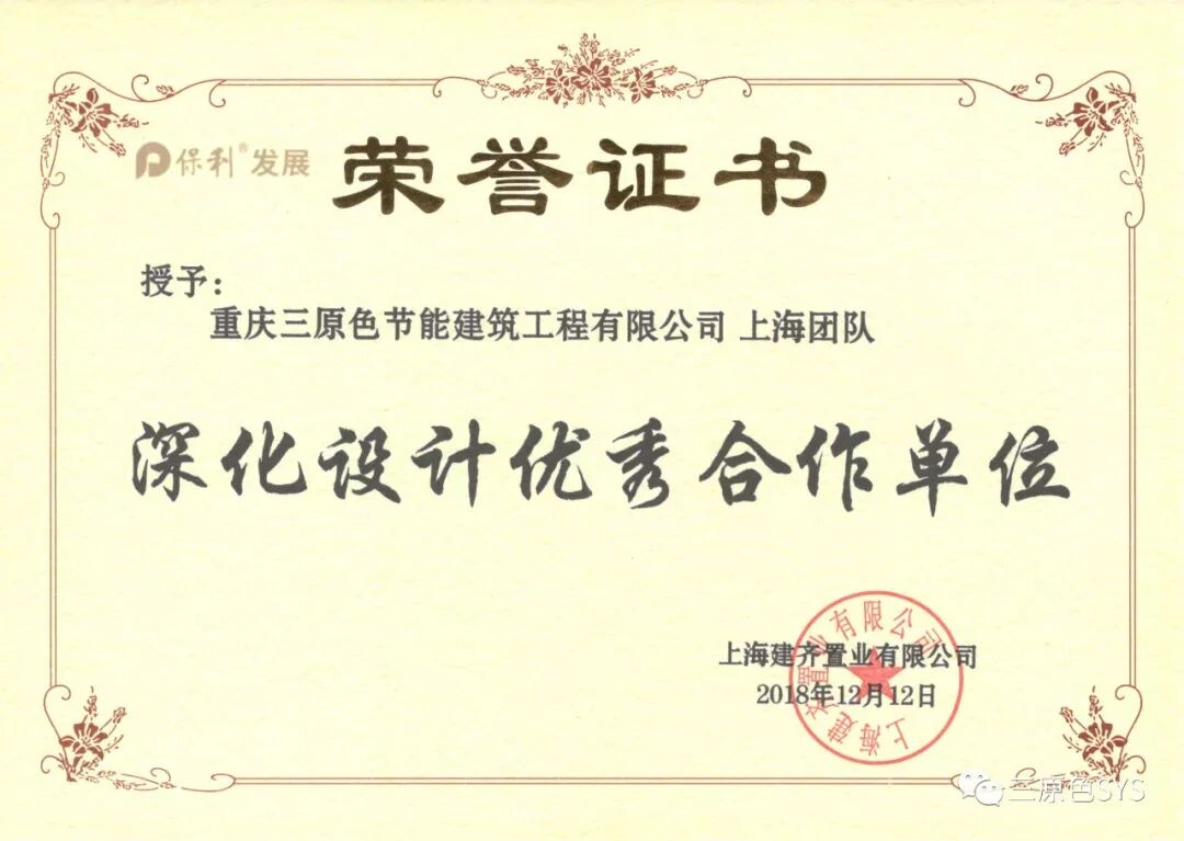 保利发展(上海)公司颁发“深化设计优秀合作单位”奖