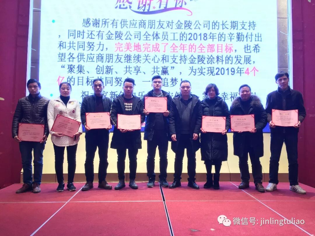2019年1月12日上午,江苏金陵特种涂料有限公司顺利召开2018年度供应商大会。董事长戴海雄、副董事长卞直兵、金陵涂料创始人卞大荣出席了本次会议,由采购物流中心总监徐晖主持会议。大会评选出2018年度金牌供应商3家,优秀供应商10家,合格供应商23家。