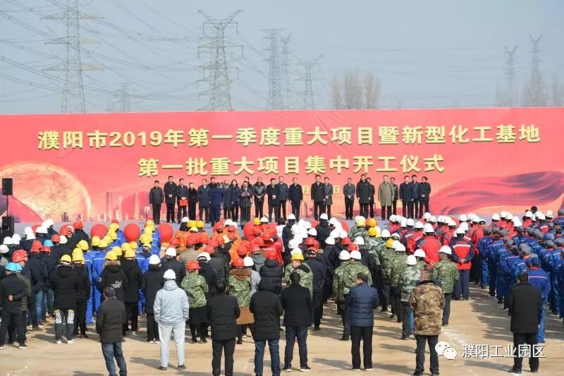 在春和景明、万物萌发、欣欣向荣的美好时节,在全市上下团结一致、信心满怀、激情澎湃开启升级发展新征程的重要时刻,2月16日上午,濮阳市2019年第一季度重大项目暨新型化工基地第一批重大项目集中开工仪式在工业园区涂料产业园内隆重举行。市委书记宋殿宇、市长杨青玖、市政协主席郑大文,市委常委、市纪委书记、监察委主任黄亚雄,市委常委、秘书长惠康,市政府副市长高建立出席会议。市直有关部门主要负责同志,园区领导班子成员,昌湖办事处、园区各单位、项目建设单位及施工单位近千人参加开工仪式。仪式由市委常委、常务副市长王载文主持。