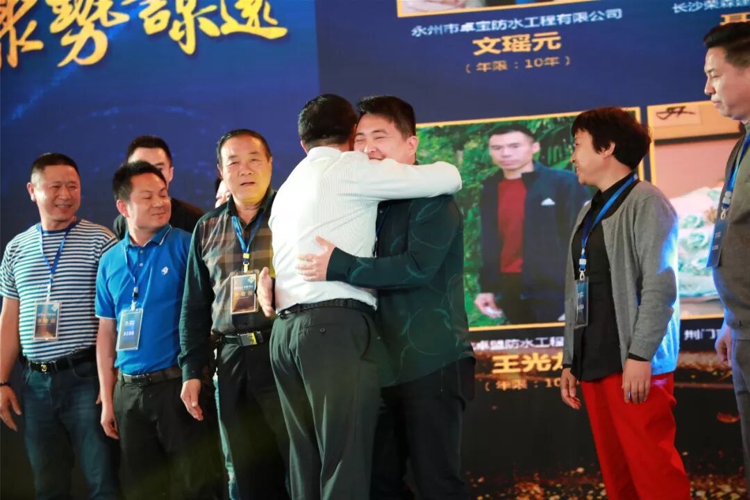 9风雨同舟奖作为压轴的一个奖项,此次共有47人荣获卓宝科技2019年度峰会风雨同舟奖,他们之中,时间最短的也与卓宝同行了10年,时间最长的有17年! 风雨同行,不离不弃,这之中有太多难忘的点滴。董事长邹先华上台颁奖。他一一与获奖人员握手、拥抱,台上台下都不禁湿了眼眶。