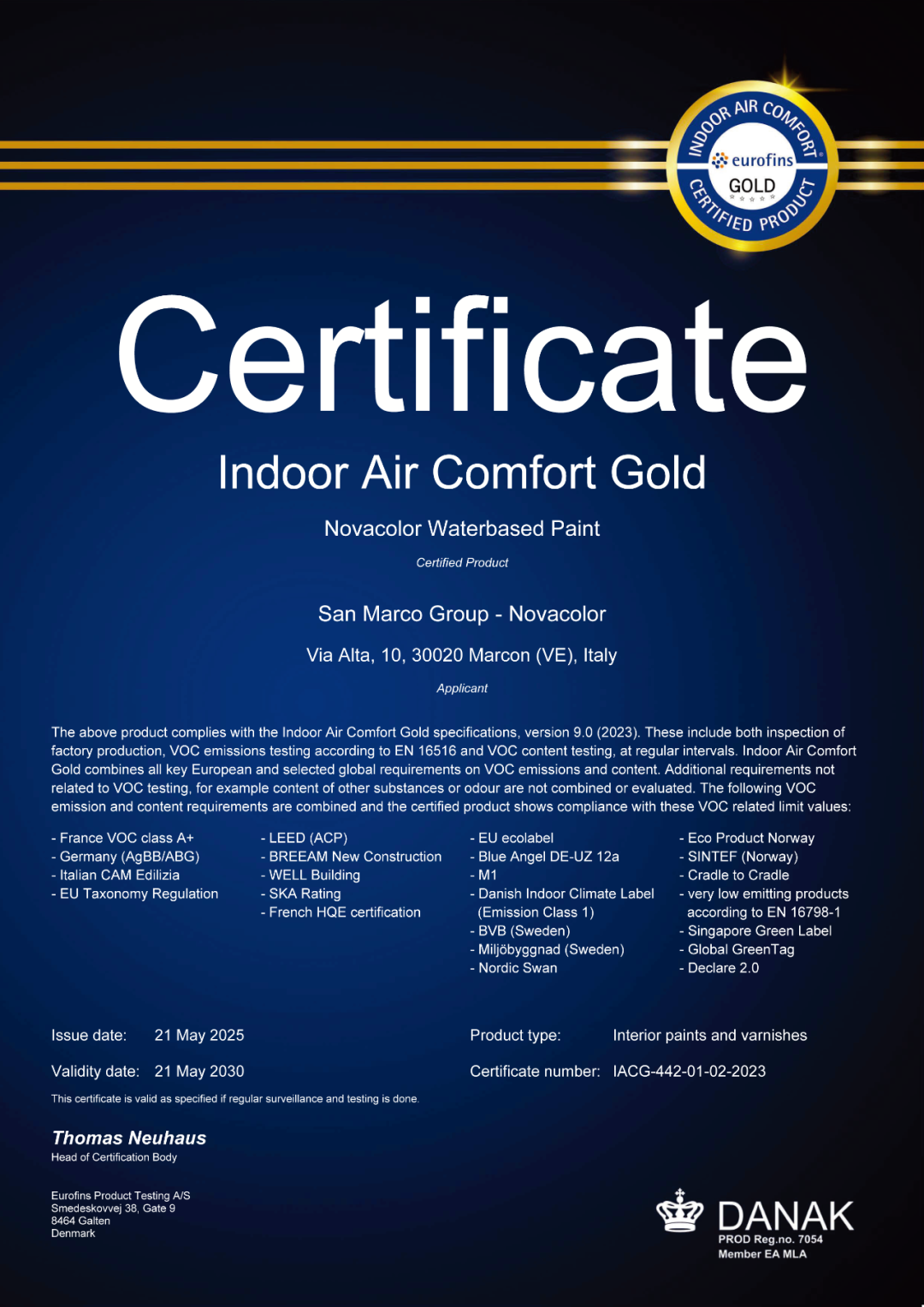 未来,Novacolor将以IAC-Gold认证为基石,凭借年审机制持续自我超越,致力于为广大消费者提供更环保、更耐久、更富艺术感的墙面解决方案,引领艺术涂料行业迈向更高标准。