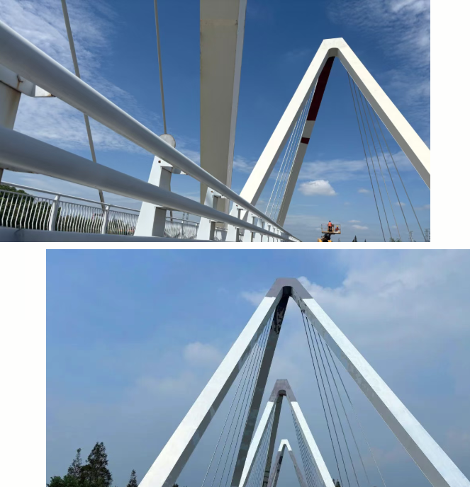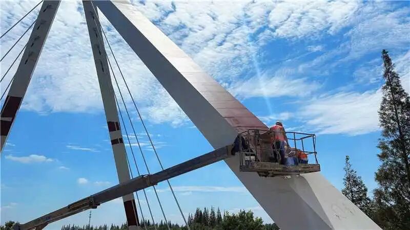 项目兼顾视觉协调与地域文化表达,通过多种颜色定制化调配,使大桥在焕然一新的同时,保持与生态景观的深度融合,漆膜细腻、质感高级,在提升行车舒适性与安全性的同时,亦成为区域一道亮丽的风景线。