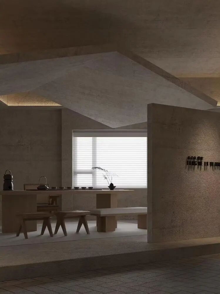 在丰合立展厅中,设计师以克制的结构与灰调肌理,营造出安静而有力量的陈列场域。