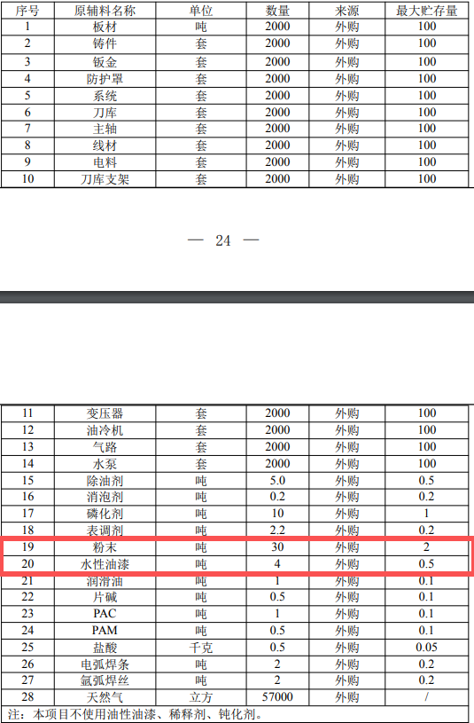 项目主要原辅材料种类和用量情况一览表