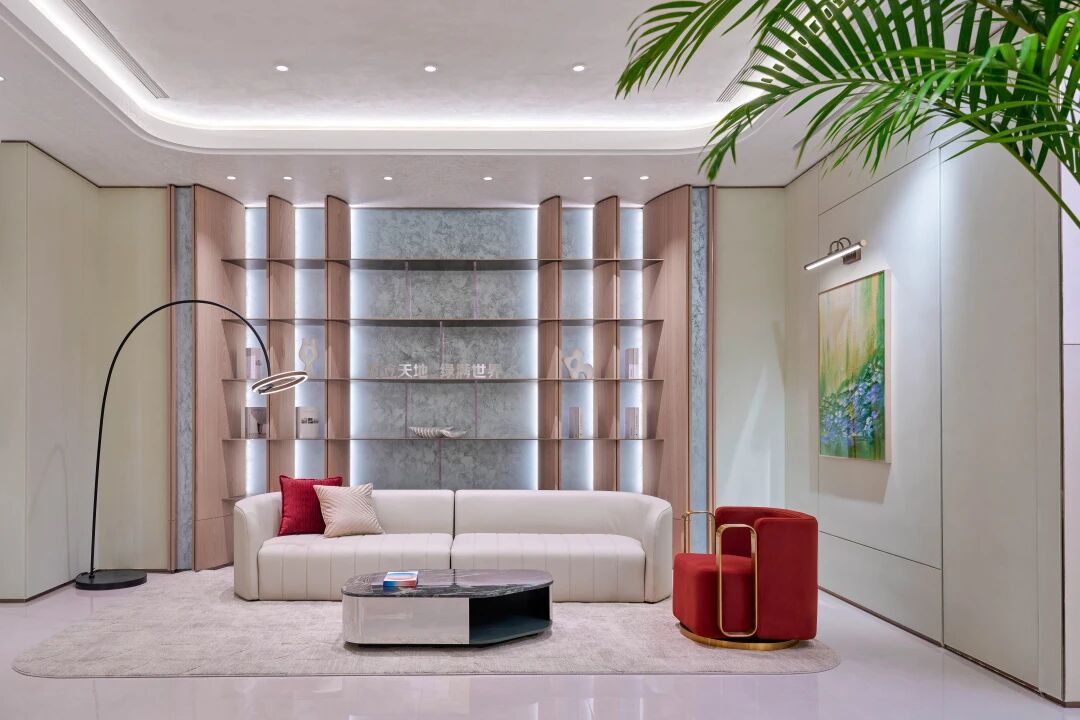 作为民族涂料行业的领军企业,三棵树始终秉持“让家更健康,让城市更美丽,让生活更美好”的企业使命。三棵树艺术漆5.0旗舰店以自然为灵感,融合艺术、设计与环保科技,打造出沉浸式美学体验空间。店内运用流畅线条、木质肌理与自然色彩,结合环保材料,营造出宁静舒适的呼吸感环境,让消费者在空间中感受美学与健康的共生。