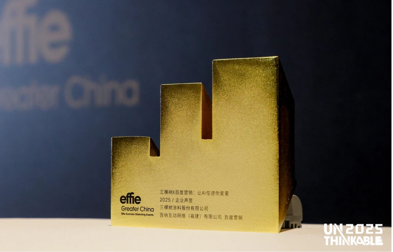 12月10日,2025大中华区艾菲场景营销奖颁奖典礼在河北崇礼阿那亚圆满落幕。三棵树凭借与百度合作的“让AI住进你星里”公益项目,荣获“艾菲场景营销金奖——企业声誉类”,成为本年度涂料行业唯一上榜品牌,标志着其在品牌建设获得国际专业认可。