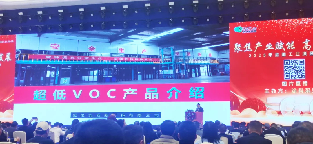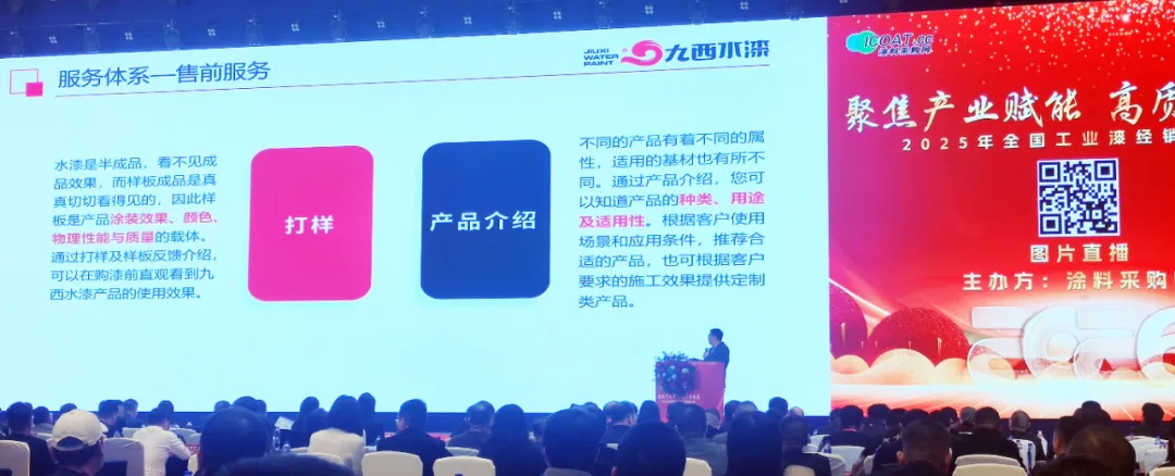 在这场千人规模的会议当中,九西水漆技术应用总监李志斌先生作《九西水漆超低VOC产品介绍》的主题分享,现场为大家深度介绍了九西水漆研发的超低VOC产品,以“零污染、高耐候”的卓越性能,为行业树立了绿色标杆。