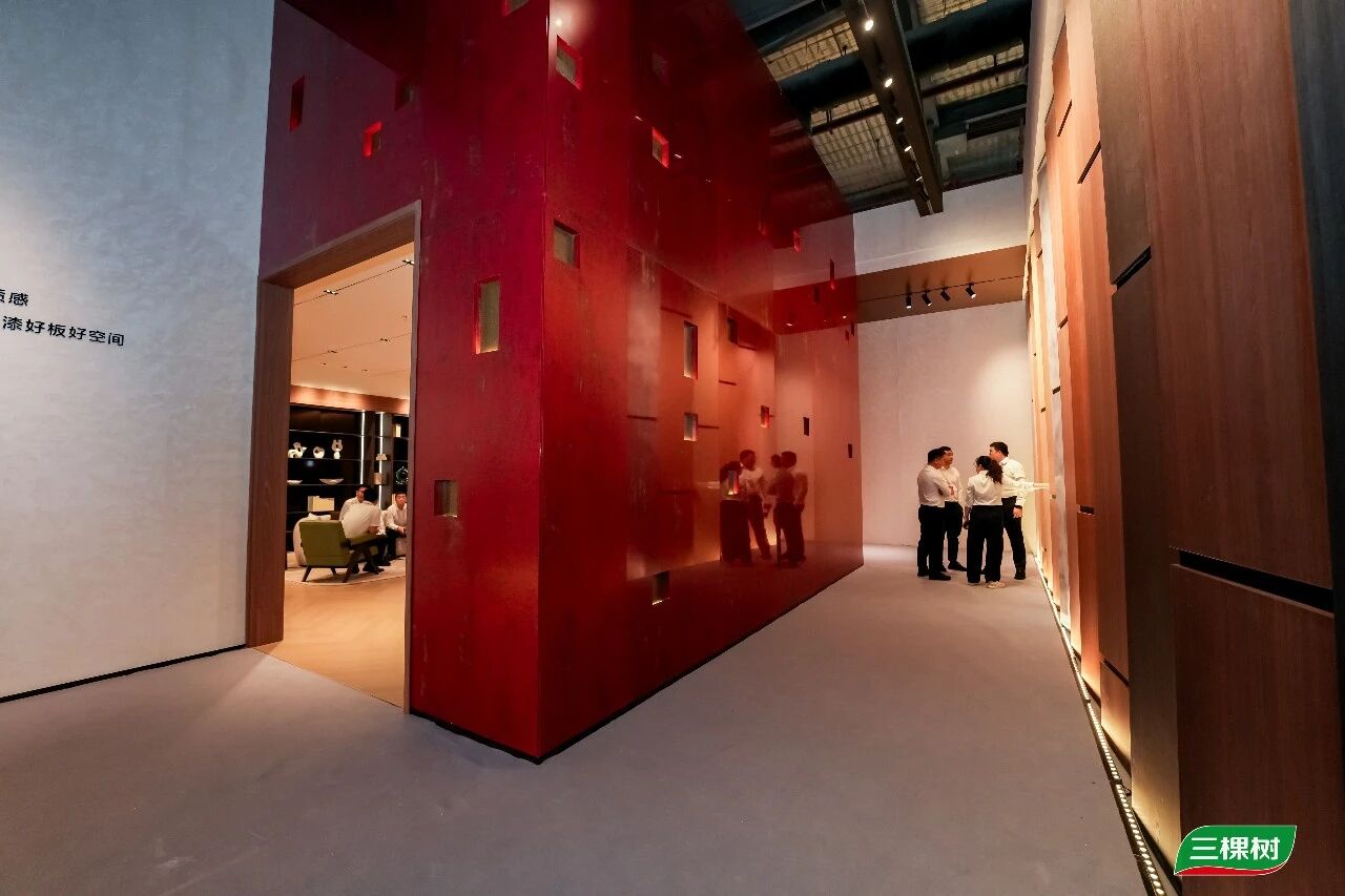 位观展者表示。来自广州的资深家居设计师认为,大漆纹理板以非遗美学的色彩表达与色显稳定技术,为高端装饰材料研发提供了新方向,“三棵树小森大漆板很惊艳,为定制家居行业的健康化、美学化、高端化升级注入国潮动能!”